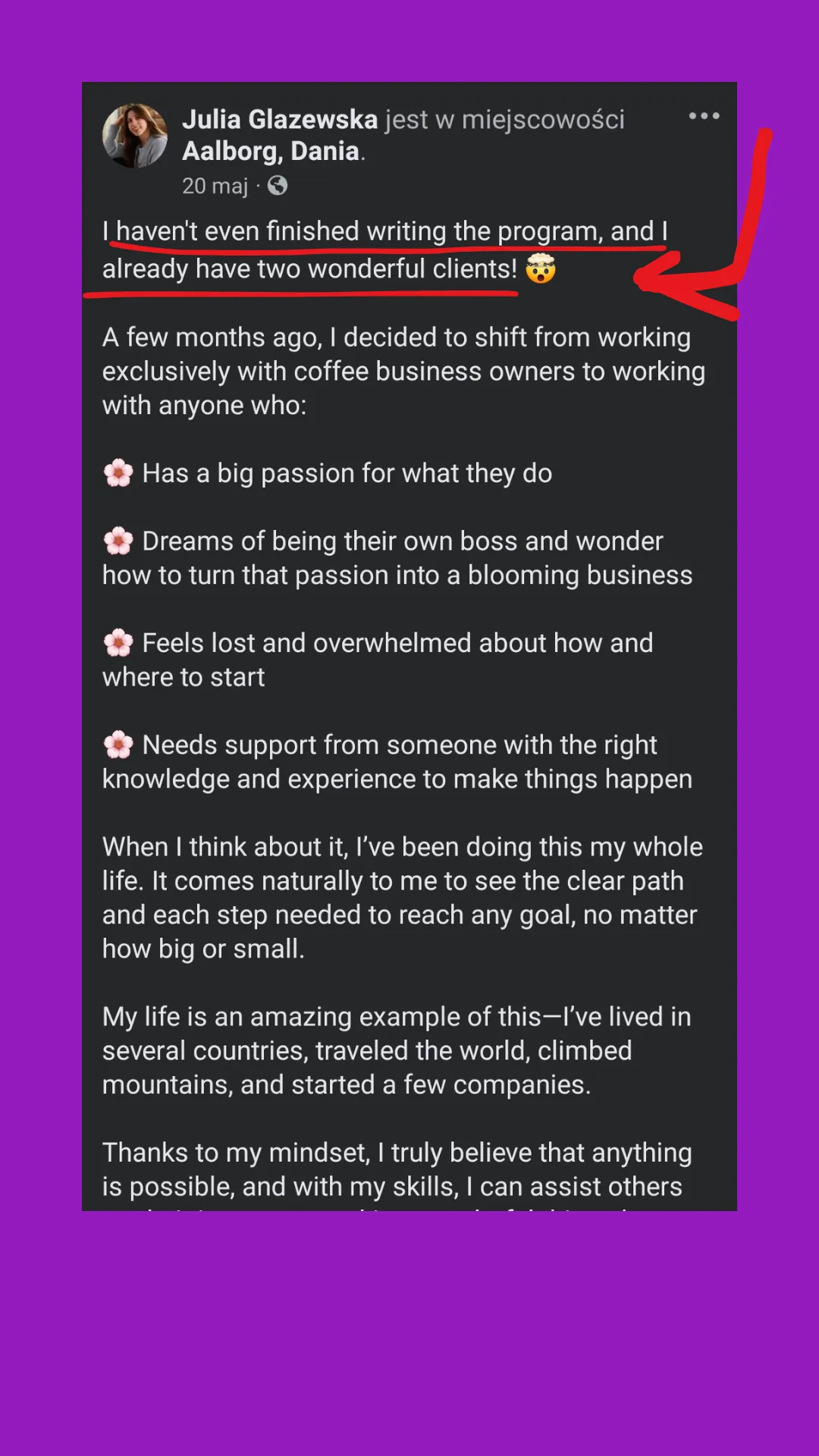Łukasz podzieli się swoimi wyzwaniami i efektami, jakie osiągnął do tej pory, w tym jak przeszedł od sesji za 500 zł do sprzedaży programu High -Ticket za 12 300 zł w zaledwie 8 tygodni!