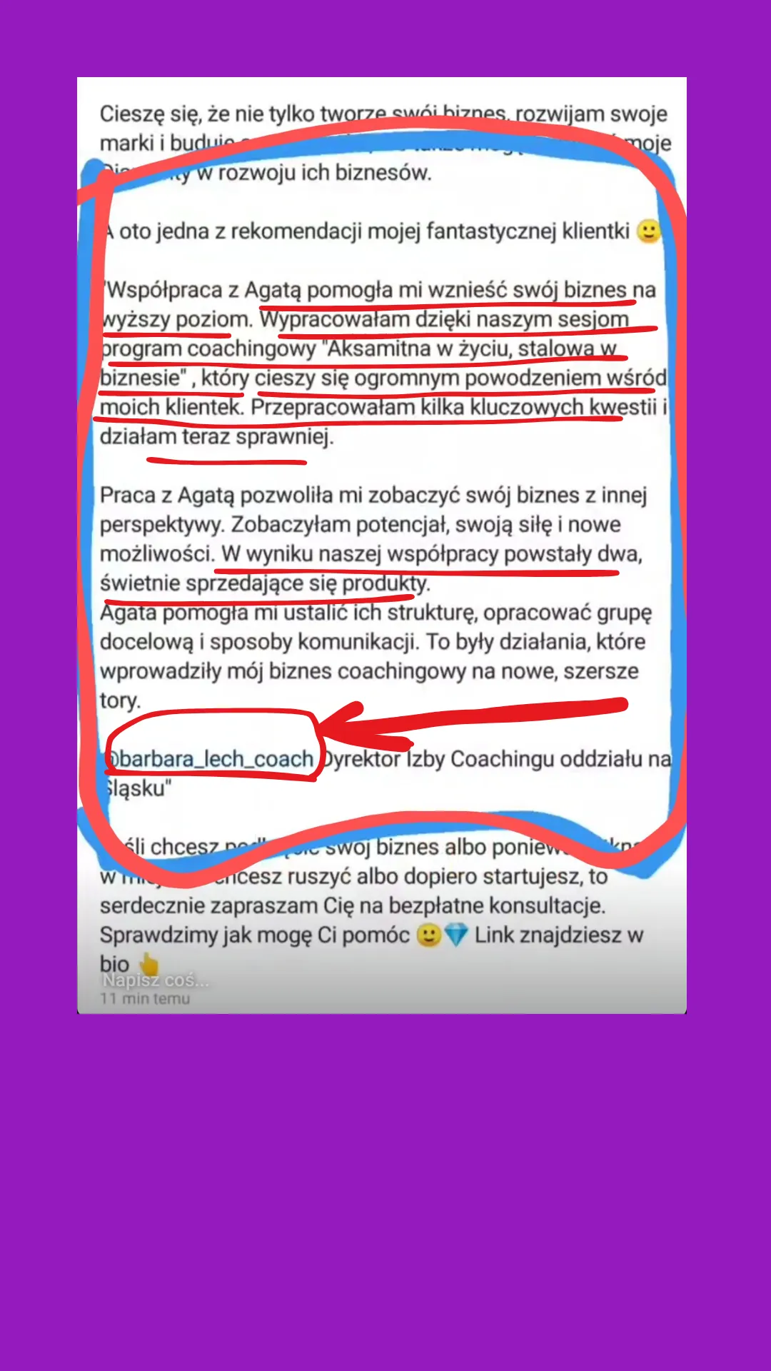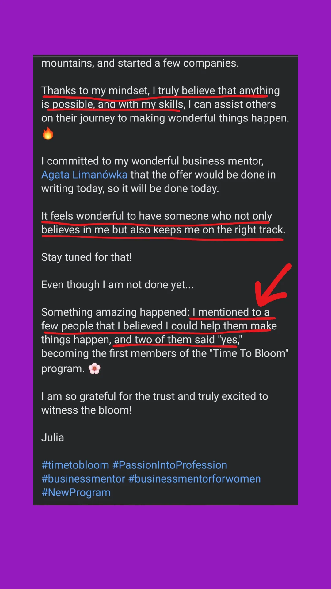 Coach i Mentor satysfakcji zawodowej, autorka programu High Ticketowego "Z Pasją do Sukcesu", który stworzyła w ramach 12 tygodniowego Programu Bogaty Coach.