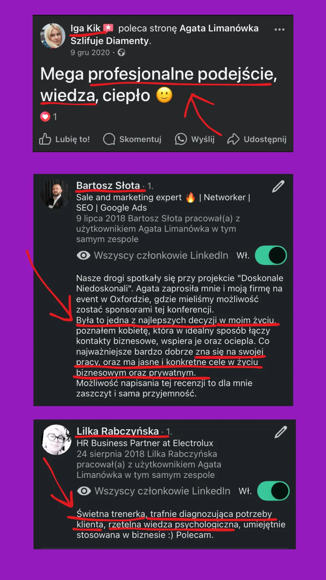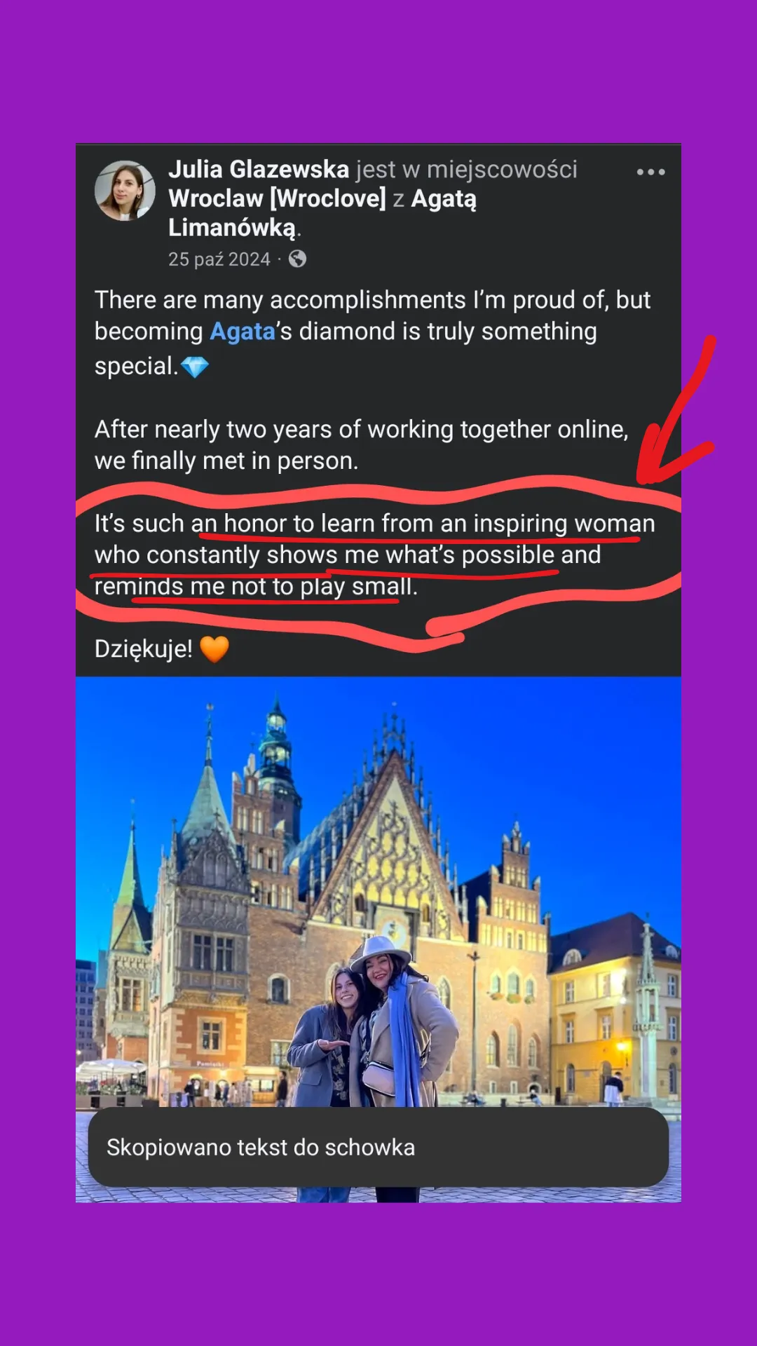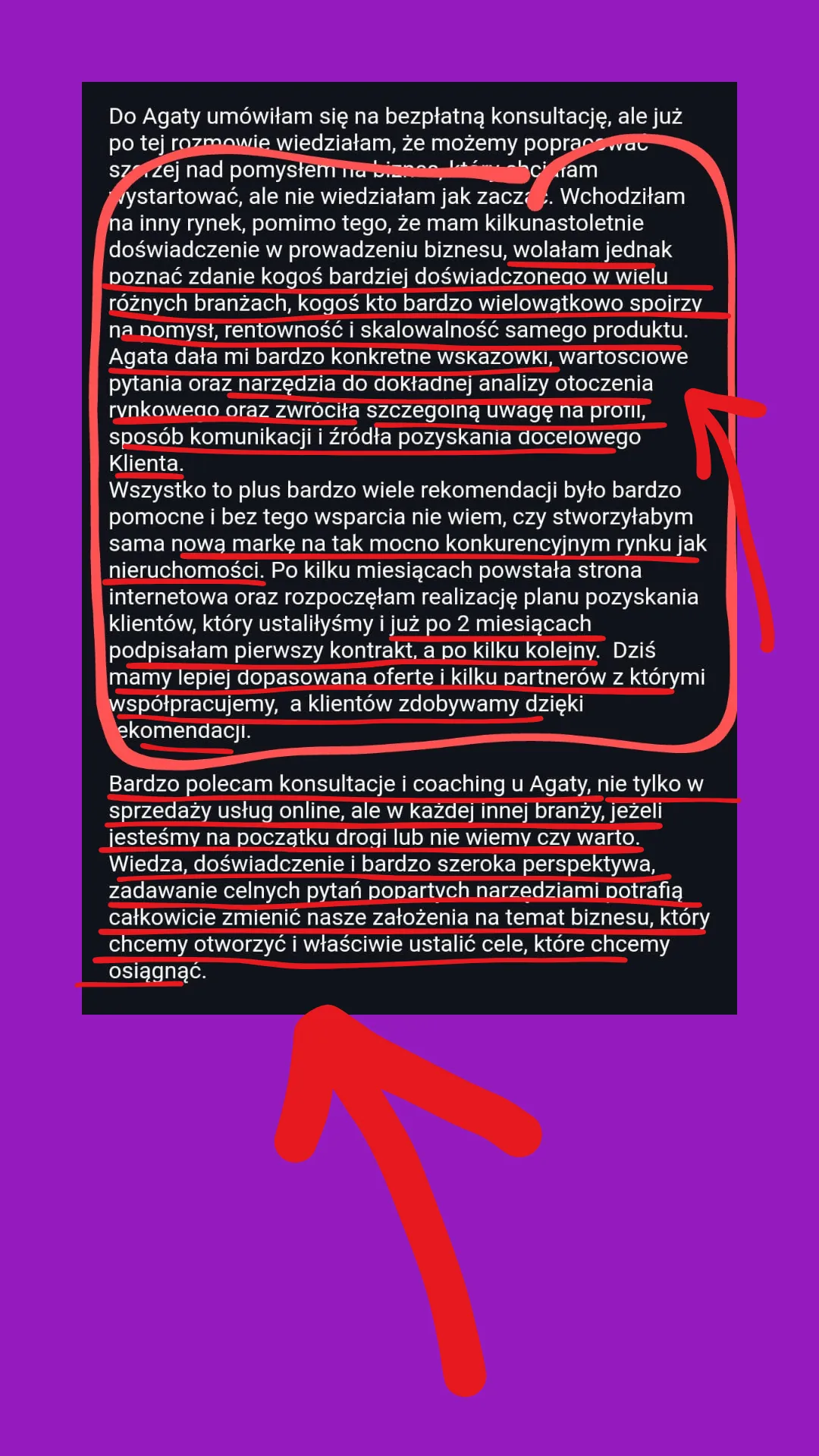 W trakcie pracy zyskała jasność co do swojej oferty i klientki idealnej, nauczyła się budować spójny lejek marketingowo-sprzedażowy i poukładała działania w konkretnym planie.