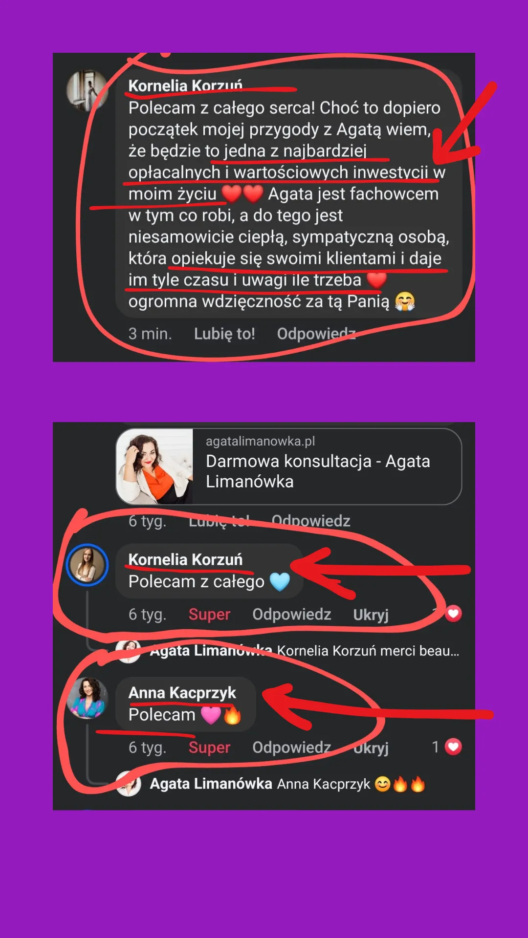 Ania Kacprzyk - Hipnoterapeutka Sukcesu, Twórczyni Metody HIPNOPOWER, Trenerka Mentalna, Coachka, Anioł Pieniądza oraz Przedsiębiorczyni. Autorka programu High Ticketowego „Zarabiaj z Mocą”, który stworzyła w ramach 12 tygodniowego Programu Bogaty Coach.